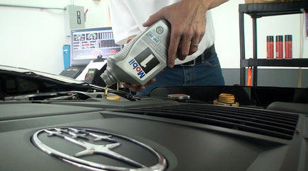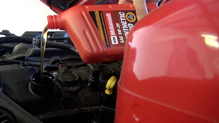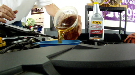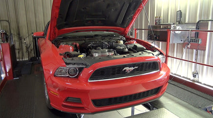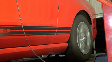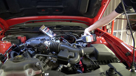 Our second subject was a 2013 Ford Mustang. This rear-wheel-drive, V6 coupe had just over 11,000 miles on the odometer. The horsepower rating at the crank for this car was 305, and as most cars are these days, the engine is mated to an automatic transmission. We again utilized an all-wheel-drive chassis dynamometer. A simple testing machine that provides a controlled environment to generate an apples-to-apples comparison of driving with and without Slick 50 product in as close to identical conditions as you can get. This is the same tool used by race teams to determine how much horsepower their race cars are producing before they go to the track. Prior to the testing, the oil was changed using factory-recommended *Motorcraft® 5W-20 Synthetic Blend motor oil.
