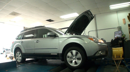 The baseline runs yielded 206hp as measured at the wheels, on the top end. Factory specs list the 2012 Outback 6cyl as measuring 256hp at the crank (engine.) This equates to a 20-25% loss in power through the driveline, which is right at the accepted calculation percentage for all-wheel drive loss.